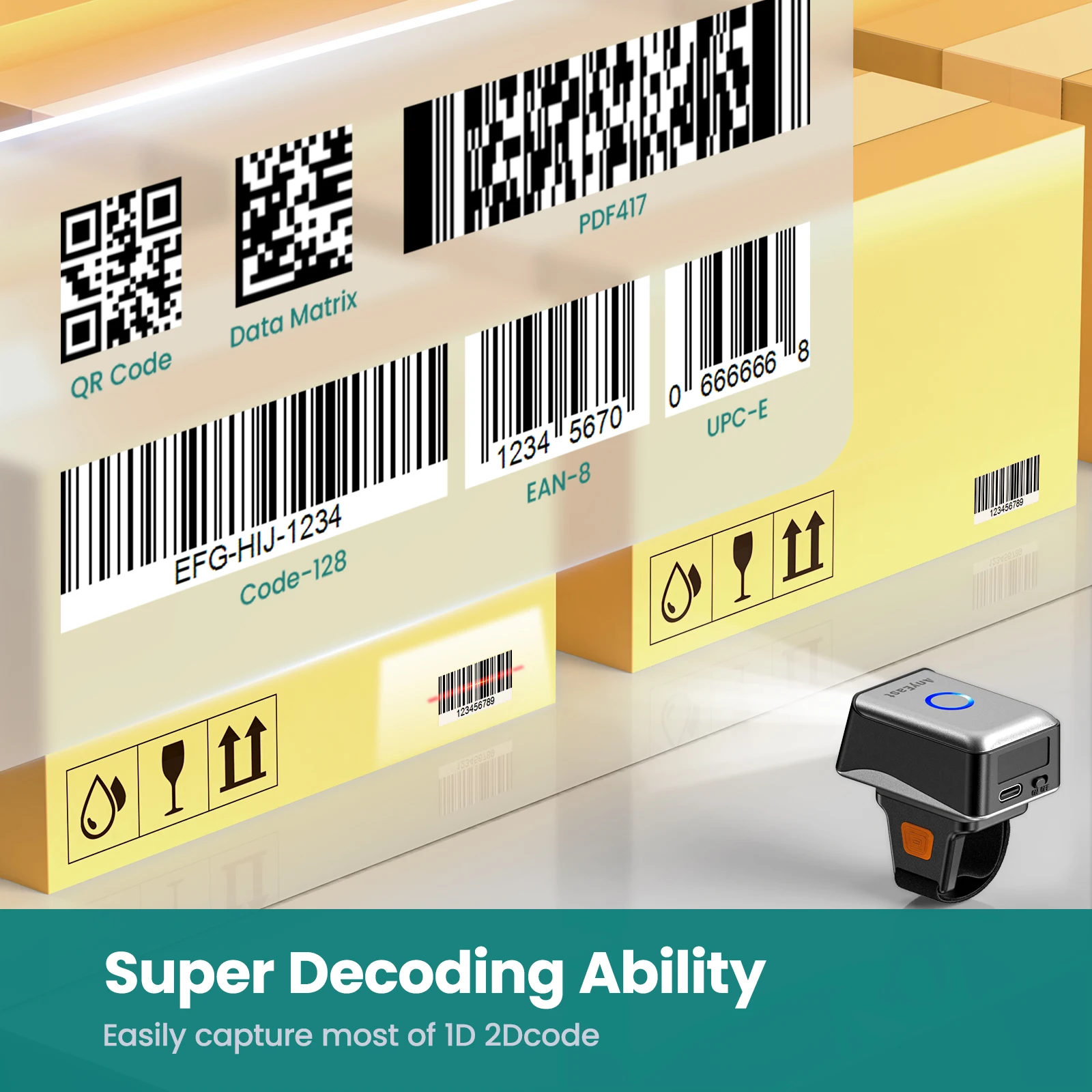 ✅【Wearable Design Improves Work Efficiency】Anyeast wireless barcode scanner adopts a lightweight ring design with 180° flexible adjustment, the mini size attributes for portably recordinng barcode data and doing other things at the same time. The 360mAh battery achieves 8 hours continuous scanning time, this 2D barcode scanner is a preferred work companion for your sales shop, bookstore, library, pharmacy, clothing store, warehouse and logistics work.
